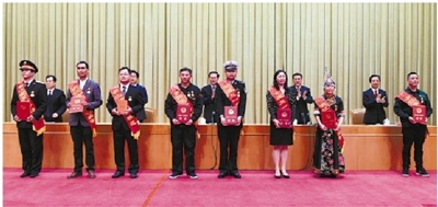 下午2点半,表彰大会在雄壮的国歌声中开始。袁家军宣读表彰决定。与会领导为受表彰的劳模先进代表颁奖。