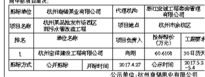 杭州果品批发市场西区雨污水管改造工程中标公示