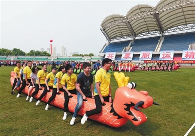 昨天,由杭州市江干区总工会等主办的江干区第三届职工运动会开幕。41支代表队、1000余名运动员,参加了啦啦操表演、拔河、陆地龙舟、跳大绳、袋鼠运瓜等趣味比赛。接下来的5个月时间里,还将举办毅行、篮球、乒乓球、羽毛球、网球等比赛,让广大职工通过参加充满竞争、合作和趣味的职工体育运动,享受运动的乐趣,愉悦身心。