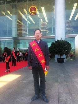 4月28日,“浙江工匠”陆金龙出席了在省人民大会堂举行的浙江省庆祝“五一”国际劳动节暨表彰劳模先进大会。
