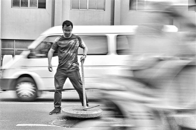 一个井盖五六十斤,吴凯锋用洋镐轻松撬开。别看他动作熟练,5年前的他根本撬不动。“当时找不到窍门,只会用蛮力,撬不起、拉不动,一个不小心还会被砸到脚。”吴凯锋不服气就这样“败”给小小井盖,他就天天背着四五斤重的洋镐,一路练手。就这样一个一个窨井盖撬过去,一个一个排污口找过去,上塘街道的水质有了天翻地覆的变化。