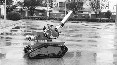 笔者看到,这款消防灭火机器人长1.2米,宽0.8米,高0.6米,装有全地形履带。据介绍,这个“钢铁侠”可以冲入火场,原地转向、爬坡、越沟,十分机灵。在火灾现场,它可以喷射出水或泡沫混合液,最远射程达100米。它可以对危险品进行远距离遥控灭火,并通过数据和视频的无线双信道传输,实现1700米内遥控操作。