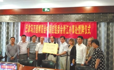 近日,巴拿马太平洋万国博览会中国区组委会浙江办事处授牌仪式在杭州举行。省政协原副主席徐鸿道出席并讲话,中国区组委会主席余顺表,浙江办事处主任、秘书长王国灿等出席授牌仪式。