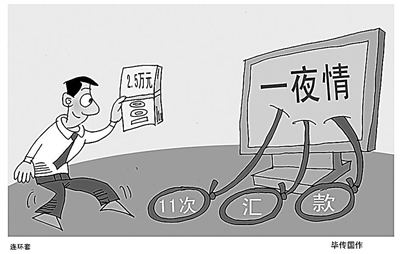 据媒体报道,南京一男子为得到“一夜情”服务,根据对方指示,先后11次汇款近2.5万元,结果连人影都没看到,这才意识到被骗。5月30日,江苏省反通讯网络诈骗中心提醒市民,网络招嫖多为陷阱,一旦被引诱往往人财两空。而即便得到服务,卖淫嫖娼同样是违法行为。