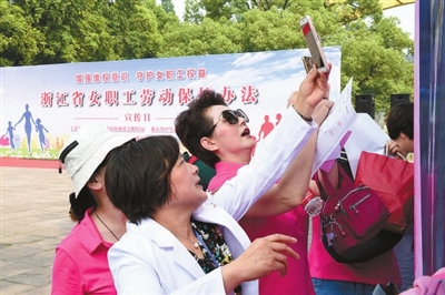 本报讯 记者王海霞报道 保护女职工合法权益,从学法懂法开始!6月3日上午,省人社厅、省卫计委、省总工会、省妇联在杭州少年宫广场举行新修订《浙江省女职工劳动保护办法》(以下简称《办法》)宣传日活动。省总工会副主席张卫华出席活动。