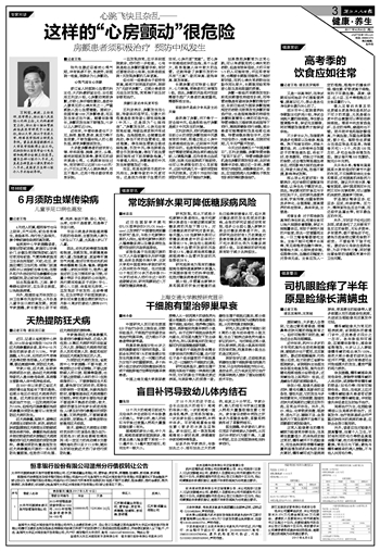 浙江工人日报 健康·养生 00003 这样的“心房颤动”很危险 2017-06-06 2 2017年06月06日 星期二