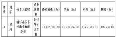 中国华融资产管理股份有限公司拥有浦江县卡卡拉鞋业有限公司1笔不良债权,截至交易基准日,债权总额为13,415,711.20元,债权担保方式为抵押加保证。(具体材料可到中国华融网站www.chamc.com.cn查询)