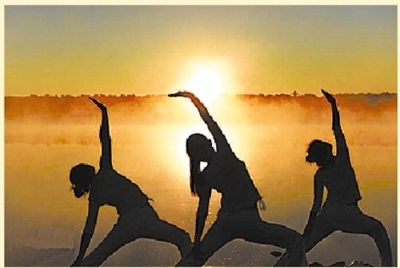 6月21日,国际瑜伽日,几名瑜伽爱好者在黑龙江省呼玛县的黑龙江畔练习瑜伽。
