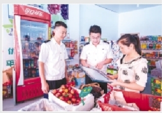 图为近日市场管理人员王昀将实施“最多跑一次”改革以来第70份新办许可证送到卷烟零售户手中,并对烟草专卖相关法律法规进行宣传。