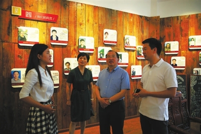 | 杜世源(右二)在元谷创意园参观文化墙。 |