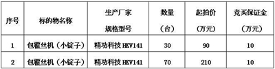 本公司受委托,定于2017年7月5日下午2时在浙江省金华市环城南路1782号华佑商务宾馆七楼会议厅公开拍卖HKV141型包覆丝机,公告如下: