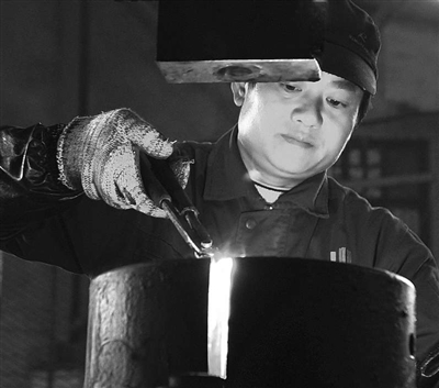 在玉环市大麦屿街道的宏泰锻压厂里,一名锻造工正将一件烧红的工件,放入模具内锻压成品。即使是酷暑天气,锻造工们仍穿着厚厚的工作服坚守在一线,加上锻造时的高温,完成一件成品后,工人师傅们早已热得满头大汗。他们用坚守和奉献,诠释什么才是真正的工匠精神。