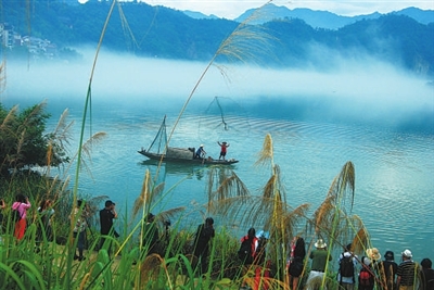 下涯湿地美如画 渔夫模特分外忙