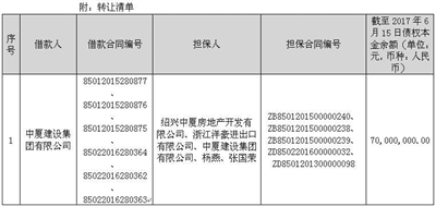 根据上海浦东发展银行股份有限公司杭州分行与浙江省浙商资产管理有限公司签署的《资产转让合同》(编号:02HZ2017008,日期:2017年6月15日),上海浦东发展银行股份有限公司杭州分行(含各分支行)已将其对下列债务人及其担保人享有的主债权及担保合同项下的全部债权(包括但不限于担保债权、违约金债权、损失赔偿权、利息债权及转让方已经缴纳的诉讼费、保全费等)依法转让给浙江省浙商资产管理有限公司。上海浦东发展银行股份有限公司杭州分行与浙江省浙商资产管理有限公司联合公告通知各债务人及担保人以及其他相关各方。