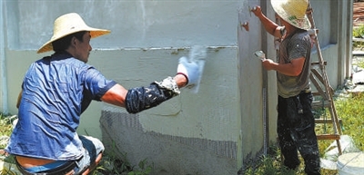 | 昨天,是今夏入伏的第一天,骄阳似火。下午2时30分左右,在杭州文一路隧道工程新建围墙工地上,来自河南信阳的建筑工人刘师傅在“刮墙面”,背上的衣服像是从水里捞出一样。刘师傅说,天太热了,我们干一会儿就歇一会儿,多喝点水,这样不会中暑。 当日,浙江省气象台发布了高温报告,提醒大家注意防暑降温。 记者周金友 摄影报道 |