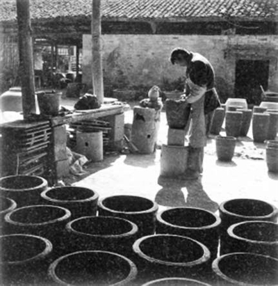 菇溪缸业为什么有如此强的生命力?首先是它适应了以家庭为单位的小农经济的需要。在农村,家家户户都需要水缸、米缸,酿酒、腌菜、盛物都离不开陶器。台州一带居民还将有嘴的酒壶等作为吉祥物放在女儿的嫁妆里,祈盼来年早生贵子。其次是它具有灵活的交易方式。除用现金支付外,还以物换物、以物换票证。平原的谷物、山区的山货、海边的海货,都可以用来换缸。