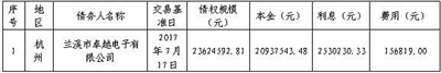 我公司拟对上述债权进行处置,处置方式为公开竞价(竞价文件请到我公司领取),现予以公告。公告期为刊登日起10个工作日,公告时间为2017年7月20日至2017年8月2日。