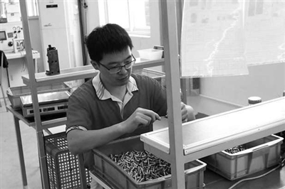 | 奉化区总工会职工服务中心主任陈伟当起装配工。 |