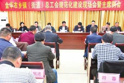 | 2016年3月29日,金华市乡镇(街道)总工会规范化建设现场会暨主席例会在义乌市举行,省总工会副主席董建伟,金华市政协副主席、市总工会主席吴国成出席。 |