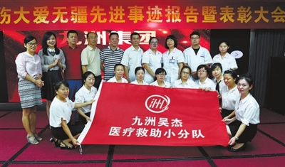 会上还宣布成立了九洲吴杰医疗救助小分队并举行授旗仪式,以弘扬救死扶伤的大爱精神。