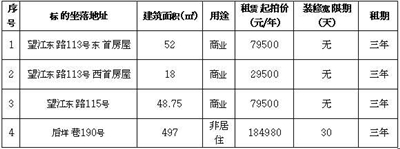 | 一、拍卖标的及起拍价: 注:本次拍卖起拍价为首年租金,具体详见《拍卖文件》。 二、咨询、报名时间、地点:即日起至8月16日下午4时30分止(工作时间),温州市杏花路200号侨房大厦二楼(本公司)。 三、展示时间、地点:即日起至8月16日下午5时,标的所在地。 四、有意竞买者,请带有效身份证件及竞买保证金2万元,单位凭营业执照副本、法人证明及公章,个人凭身份证,前来办理报名手续,领取号牌和资料,拍卖不成者保证金无息退还。 五、本公司网址http://www.hfauction.cn/ 咨询电话:0577—88529301 0577—88529132 工商监督电话:0577—89661259 温州汇丰拍卖行有限公司 2017年7月29日 |