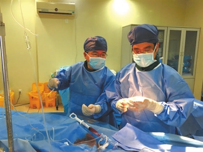 | 湖州市中心医院心内科的医生们正在为病人进行手术。 |