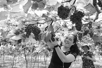 高温天为绍兴柯桥农业“采摘游”带来商机。这些天,柯桥市民不断涌入城郊“甬优家庭农场”采摘葡萄,享受采摘乐趣。