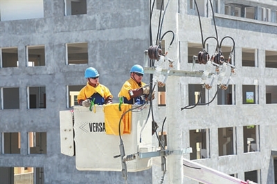 近日,杭州萧山区最高气温爬到了37摄氏度。当天,国网杭州市萧山区供电带电作业人员“全副武装”,对10千伏上戴线进行了带电作业。由于带电作业工作的特殊性,工作人员除了身着日常的工作服和安全帽外,还需要穿上绝缘披肩、绝缘服和绝缘手套,乘升降斗在离地10余米的高空,迎着热浪开展工作。据悉,萧山区供电公司拟采用带电作业减少用户停电时间,保障市民“清凉一夏”。 李俊 徐国锋
