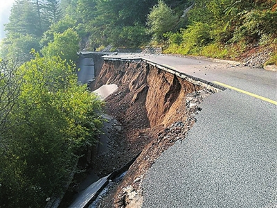 | 这是8月9日拍摄的九寨沟景区里通往五花海景点的道路情况。 九寨沟7级地震发生后,景区工作人员在景区内展开排查,搜寻失踪人员,查看并统计灾情。目前景区道路多个海子存在不同程度受损,多处山体垮塌。 新华社发(桑吉 摄) |