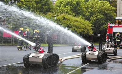 本报讯 记者吴晓静 通讯员余昌龙、倪红萍报道 能负重300公斤重物,爬过楼梯抵达火场;能冲进火场,连续工作3个小时以上;能将火场内部的视频,第一时间传回指挥中心……近日,绍兴市首批应用于灭火救援的防爆灭火侦察机器人“上岗”。今后,它们将与消防官兵一同冲在第一线,保卫人民群众的生命与财产安全。
