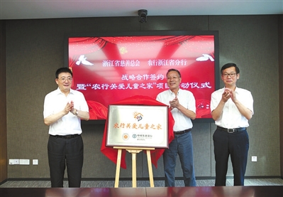 日前,浙江省慈善总会与农业银行浙江省分行正式签约,共同发起成立“伴你成长”金穗慈善基金。据悉,该基金成立后将由农行率先捐助10万元,发起“关爱儿童之家”项目,项目当天同步启动。省慈善总会会长陈加元、省民政厅厅长王剑侯、省农行行长冯建龙等相关人员出席签约仪式并为项目揭牌。