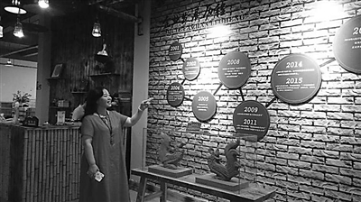 | 图为浙江节节高炭业有限公司的创业历程展示墙。 雨萱 摄 |