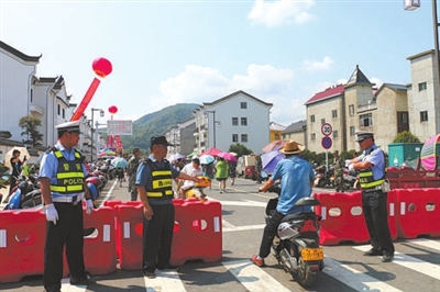 图为常山县公路路政公安交警执法人员一起为来自世界各地的宾朋做好安保工作。徐莹 汪诚