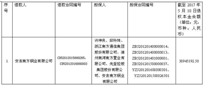 | 注:1. 本公告清单列示暂计至2017年5月10日的贷款本金余额,借款人和担保人应支付给湖州菲诗特普机电有限公司的利息按借款合同、担保合同及中国人民银行的有关规定计算。 2. 若债务人、担保人因各种原因更名、改制、歇业、吊销营业执照或丧失民事主体资格的,请相关承债主体及/或清算主体代为履行义务或履行清算责任。 3. 清单中“担保人”包括保证人、抵押人、出质人,担保人的担保范围以签署的合同等法律文件约定为准。如公告中债务人、合同编号、债权金额、担保人等信息与事实不符的,以签署的合同等法律文件约定为准。 附:转让清单 |