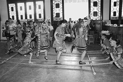 喝揽门茶、敬献彩带、喂吃麻糍、跳竹竿舞,好客的江下村村民,让来客感受到了回家的感觉。