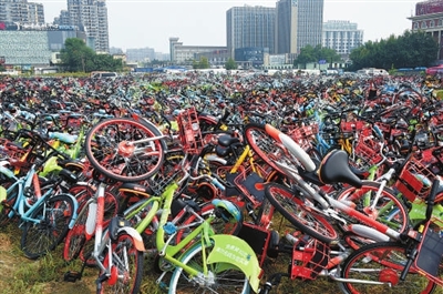 大门口两位环卫工人直言,好些日子了,就看着每天一车一车,不停地把各种颜色的共享单车拉进来,遇到个别野蛮装卸的,直接把单车从货车上扔下来了,看着都心疼!这么好的自行车堆在这里,天天日晒雨淋,真的是在糟蹋啊!(下转第4版)