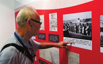 记者周金友摄影报道 昨天上午,在杭州市档案馆开展才一天的《信仰的力量——中国共产党人的家国情怀》展现场,82岁的原杭州市“五交化”退休职工杨大伯,一字一句地读着一幅中央档案馆馆藏的1952年公审并判处刘青山、张子善死刑的图片的说明(图①),情不自禁地忆及当年轰动全国的党的高级干部犯法一样被判极刑的大事,感慨万分!