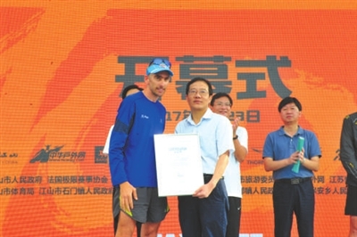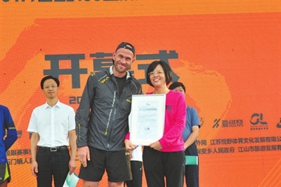 上午7点,35KM组和8KM组的选手依然在起点等候,精彩的歌舞表演结束后,2017MaXi-Race China 江山100国际越野跑开幕式正式开始,由中共江山市委书记童炜鑫致欢迎辞,法国极限赛事协会代表Laurent BLONDEEL授予ITRA赛道积分认证牌,江山旅委主任姜淑芬接牌,随后安纳西市国际交流与合作处代表 Stéphane AGNOLI授予江山市MaXi-Race国际越野跑基地认证牌,江山市人民政府副市长杨君接牌。