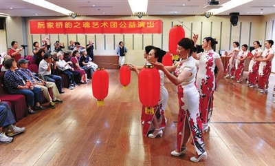 国庆、中秋节日期间,杭州拱墅区阮家桥“韵之魂”艺术团,走进杭州良渚文化村随园嘉树老年公寓,为老人们送上了一台精彩纷呈的歌舞曲艺节目,共祝愿祖国繁荣富强,同迎庆党的十九大即将胜利召开。