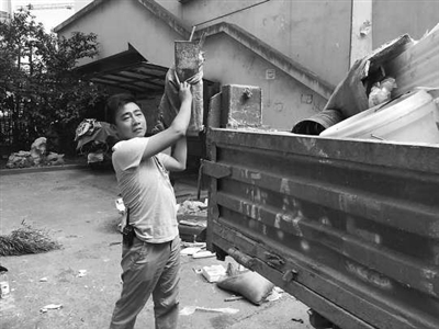 | 倪伟正在清运垃圾。 |