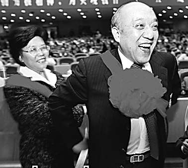 | 2006年,鲁冠球(右)被评浙江最具影响力劳模时开心地戴上了大红花。 |