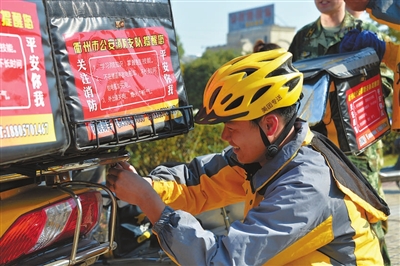 本报讯 记者吴晓静 通讯员傅元璋、崔友成报道 近日,衢州市消防支队联合“美团外卖”开展消防安全进万家119宣传月公益行动。发动衢州市区350名美团外卖速递员走街串巷开展消防宣传,提升市民消防安全意识,防范火灾事故。