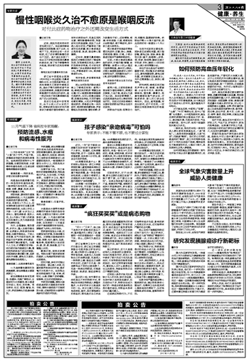 浙江省中西医结合医院(杭州市红十字会医院)耳鼻咽喉科主任、主任医师慈军说:反流性咽喉炎又被称作喉咽反流,是由于胃内容物或者气体反流到咽喉部,刺激损伤咽喉部黏膜并引起相应的症状,是一种近年来才被耳鼻咽喉科医师广泛认识的疾病。