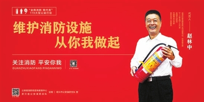 具有强烈社会责任感的赵林中热心公益、关注消防。11月份,以他作为消防宣传公益使者、主题为“维护消防设施,从你我做起”的接地气的消防公益宣传海报将陆续出现在我们身边,时时提醒我们“关注消防、平安你我”。