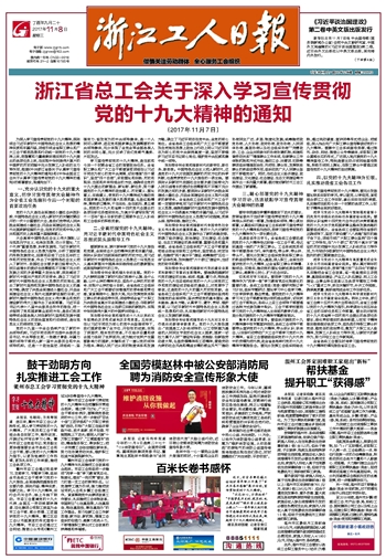 浙江工人日报 一版要闻 00001 全国劳模赵林中被公安部消防局 聘为消防安全宣传形象大使 2017-11-08 2 2017年11月08日 星期三