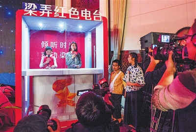 梁弄“红色电台”开播和“梁弄红领巾通讯社”成立仪式现场,电台的主持人和通讯社小主播共同直播了第一期的电台节目。宁波市、余姚市政府领导及相关专家学者出席开播仪式。