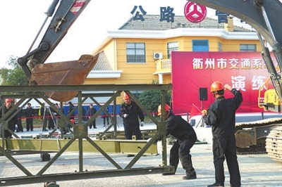 11月9日,由衢州市交战办、市交通运输局、市公路管理局联合主办,常山县交战办、交通运输局和县公路管理局联合承办的衢州市交通系统钢桥架设演练竞赛在县公路管理局城北公路站举行,来自全市各县(市、区)6支代表队参加了此次比赛。经过紧张激烈的角逐,最后衢江区、江山市、常山县等6支参赛队伍分获一、二、三等奖。此次演练,为提高全市交通应急保障能力和抢险救援水平发挥了重要推动作用。