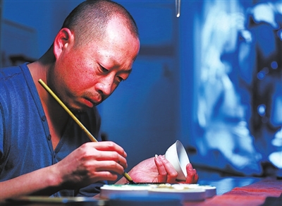 | 甄景虎在釉上彩绘 |