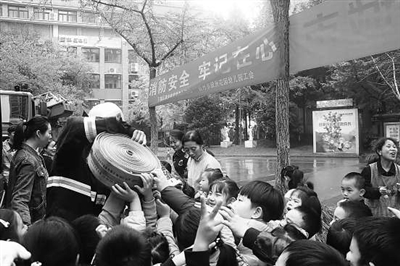 杭州市下城区青少年活动中心工会与绿洲花园幼儿园工会日前举行了一场消防演习活动。在幼儿园的狭窄楼道内,消防队员指挥师生有序撤离,体验了逃离火场的惊心动魄,在青少年活动中心的广场上,师生们又了解了消防器材如何规范有效地使用等知识。让孩子们从小树立消防安全意识,提高火灾自救能力。