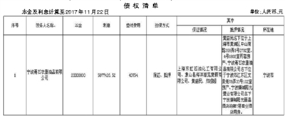 华融汇通资产管理有限公司拥有以下《债权清单》所列的1户企业债权,现交通银行股份有限公司宁波分行接受委托,拟对《债权清单》所列的宁波甬石农垦油品有限公司债权进行公开处置,现予以公告。